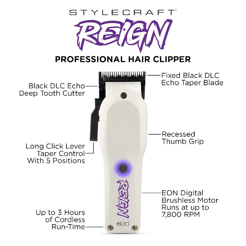 StyleCraft Reign Professional Hair Clipper with EON Digital Brushless Motor