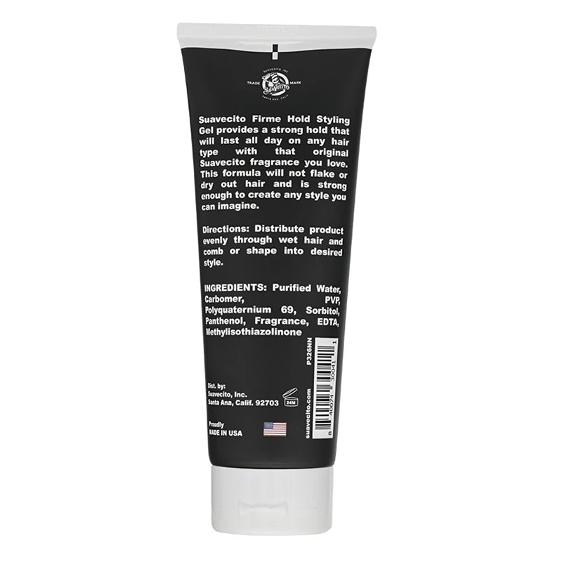 Suavecito Firme Hold Styling Gel provides a strong hold that will last all day on any hair type with that original Suavecito fragrance you love. This formula will not flake or dry out hair and is strong enough to create any style you can imagine, plus it washes out easily at the end of the day.